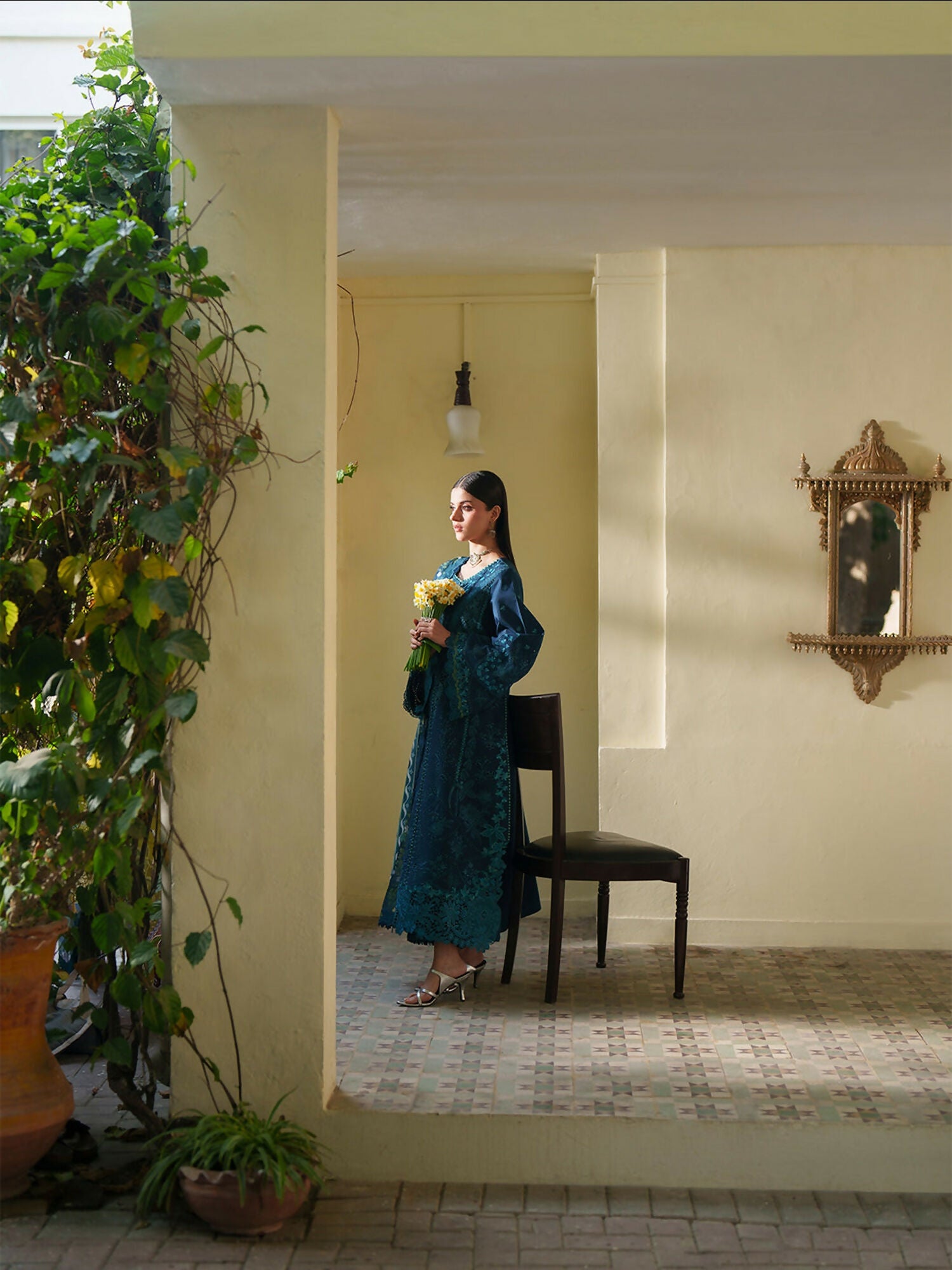 This graceful unstitched lawn suit features intricate borer embroidery enhanced with delicate organza motifs, paired with a digitally printed silk dupatta for a refined and elegant finish. Lightweight and breathable, it is ideal for summer wear and suitable for casual to semi-formal occasions.