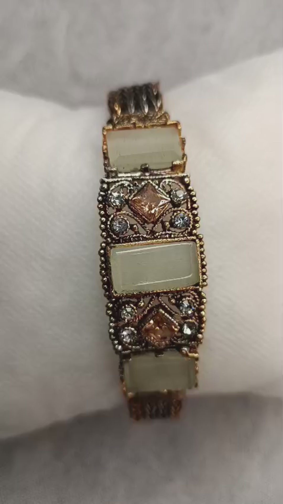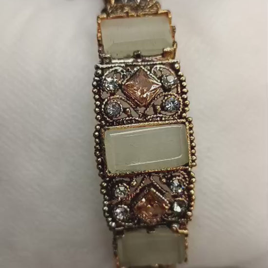 Durwaj Jewellery presents sophistication, sealed in gold.This vintage bracelet brings soft champagne hues and crystal brilliance together in a timeless design.