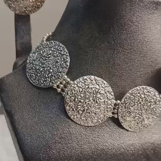 Elegance meets heritage in this handcrafted oxidized silver set. Each piece tells a story ...