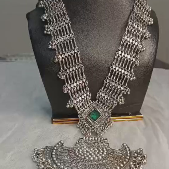 Durwaj — Where tradition meets timeless allure. Our DW-001 antique silver necklace captures regal craftsmanship with intricate detailing and a touch of emerald elegance. Perfect for festive evenings or ethnic grace, it’s a statement that speaks sophistication. Crafted to shine, designed to adore.