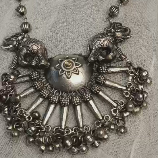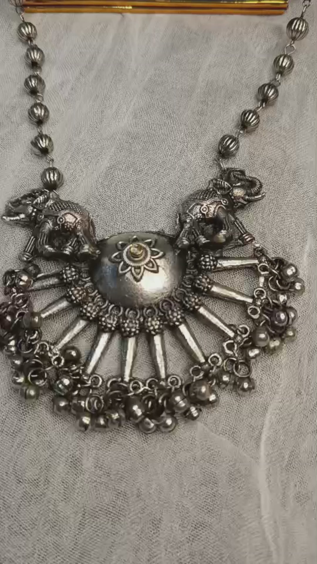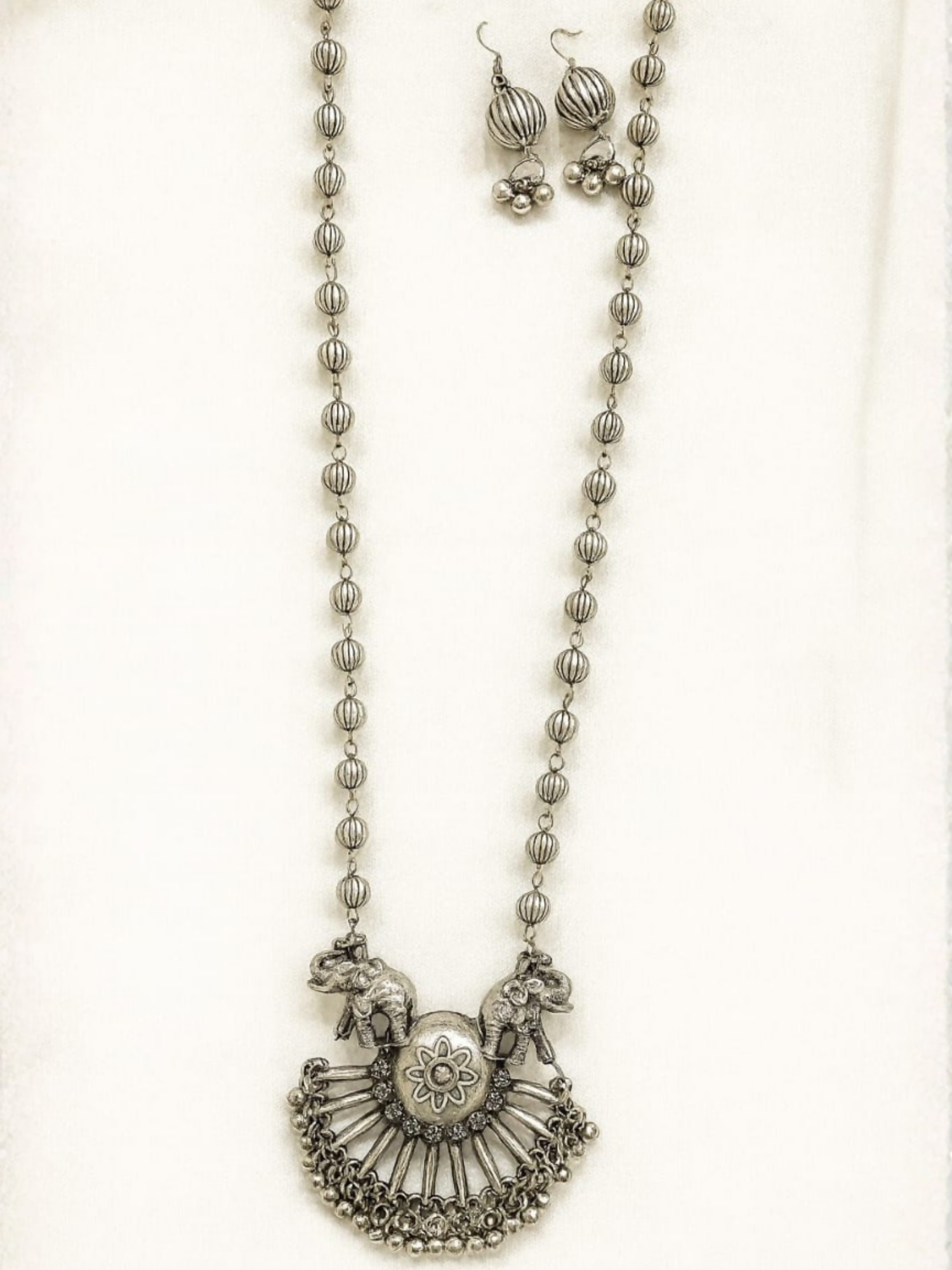 Durwaj Jewellery presents grace, power, and tradition all,in one masterpiece. This Elephant Charm Necklace Set celebrates heritage through its intricate design and bold silver sheen.