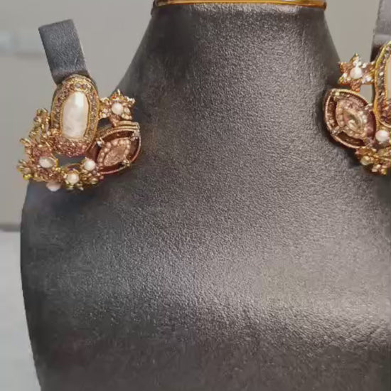 Durwaj Jewellery presents a touch of royalty in every detail.This pearl-embellished studs redefine classic beauty with their golden accents, warm crystals, and timeless craftsmanship.