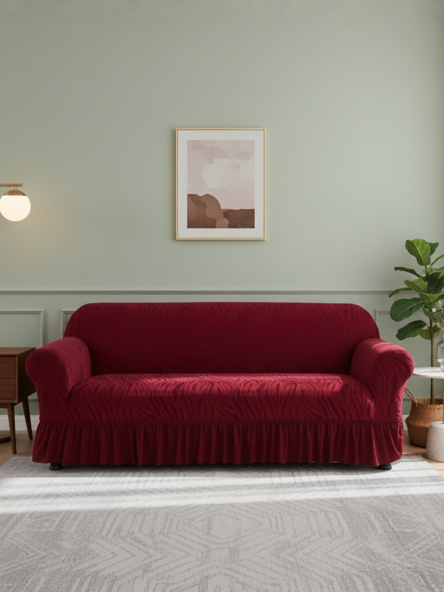 Elegant Bedding presents the Zebra Style Sofa Cover in a red shade, crafted from premium spandex fabric for a flexible and smooth fit. The chic zebra pattern adds a stylish modern touch while protecting your sofa from dust, stains, and daily wear.