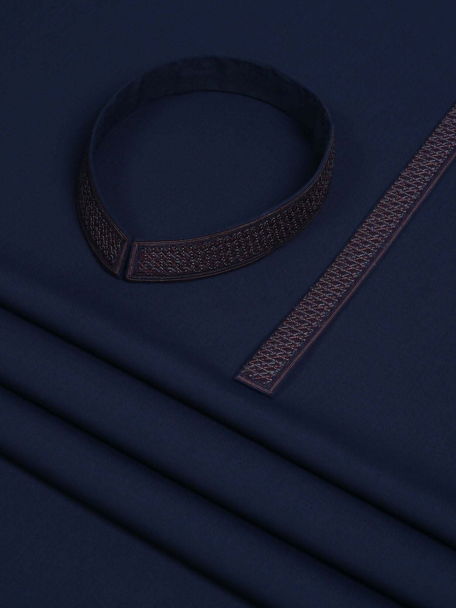 Product category: Men Unstitched 5-Colors Cross-Stitch Embroidered Bann & Front Placket Kameez Shalwar With Contrast Colors & Signature Pattern Embroidery Design.