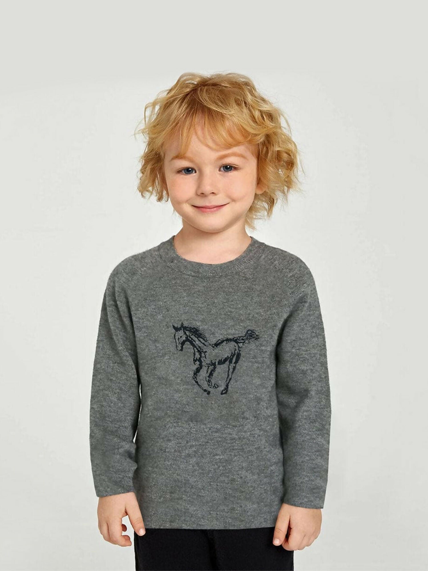 Funky Printed Long Sleeves Crew Neck Horse Tee Shirt-13762