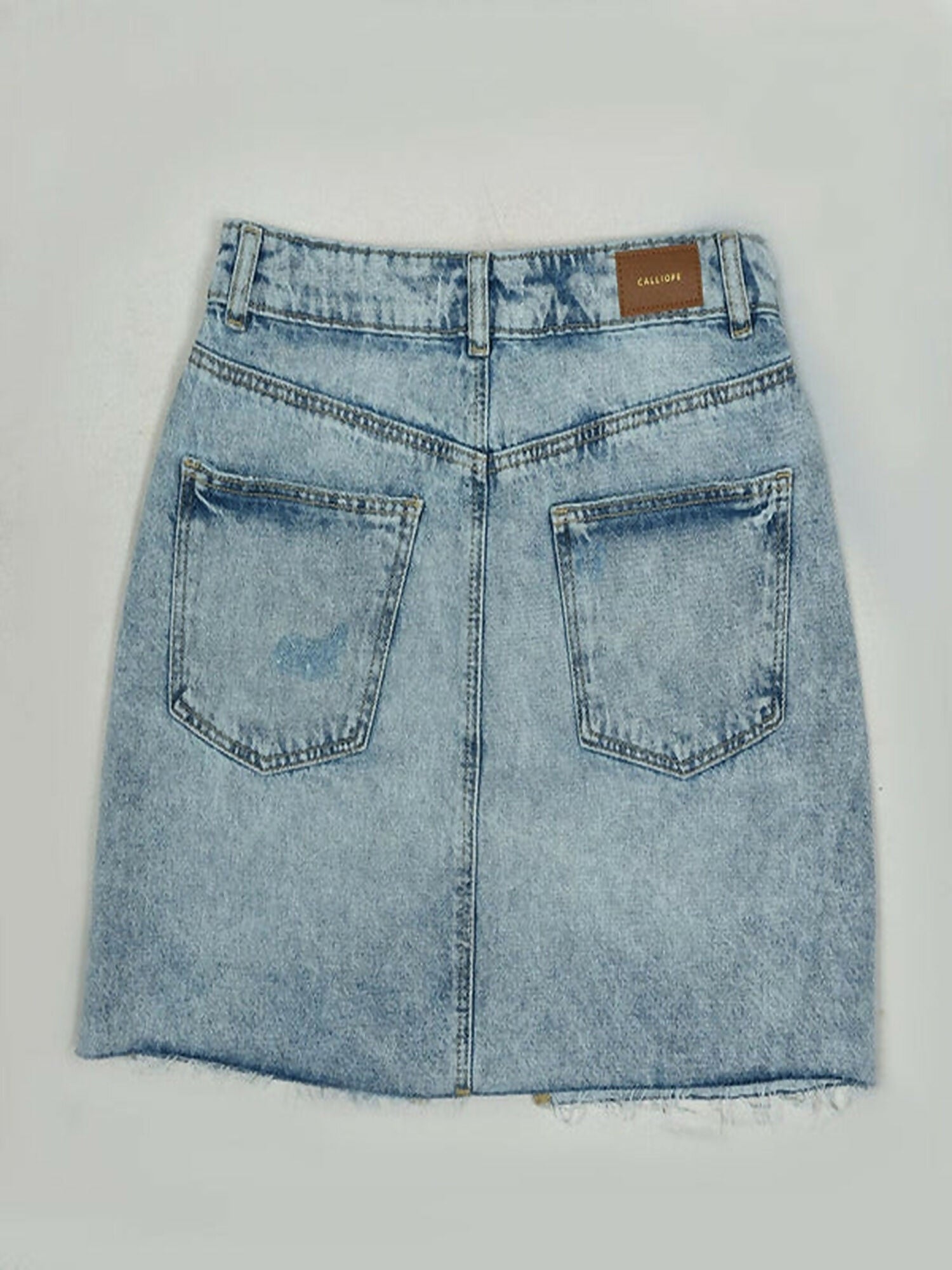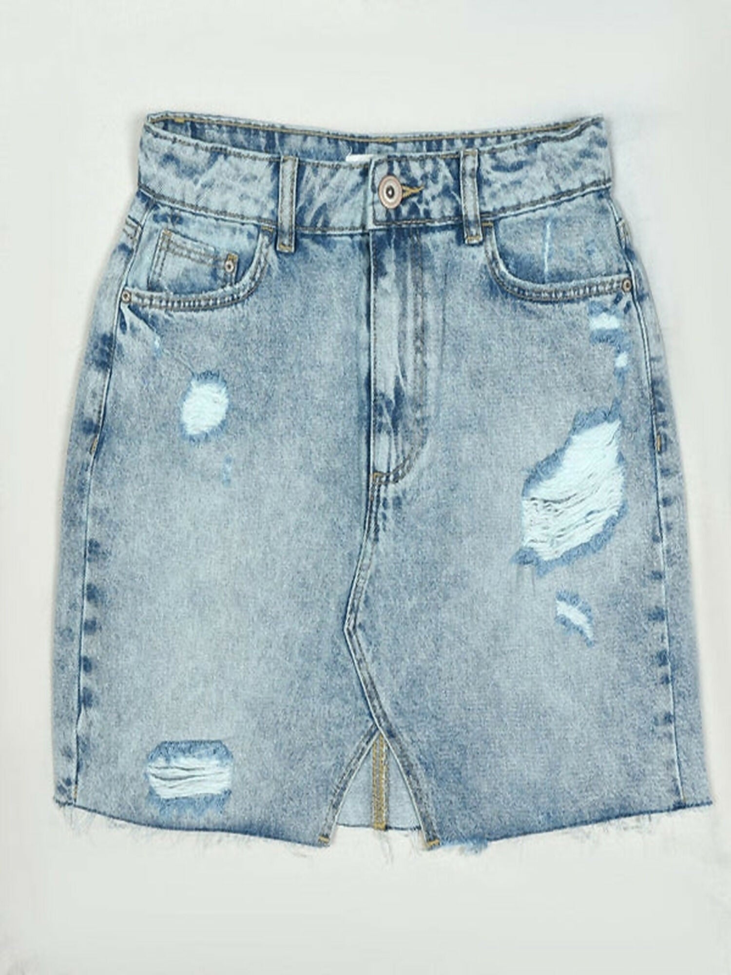 Funky's Plain MId Length Ripped Denim Skirt-11491