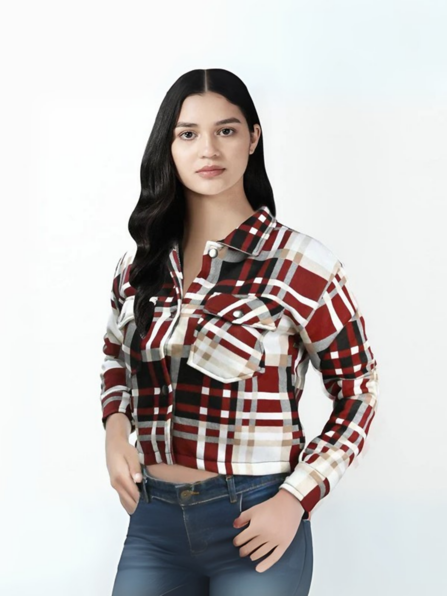Funky's Women Cropped Plaid Checked Trendy Jacket-14688