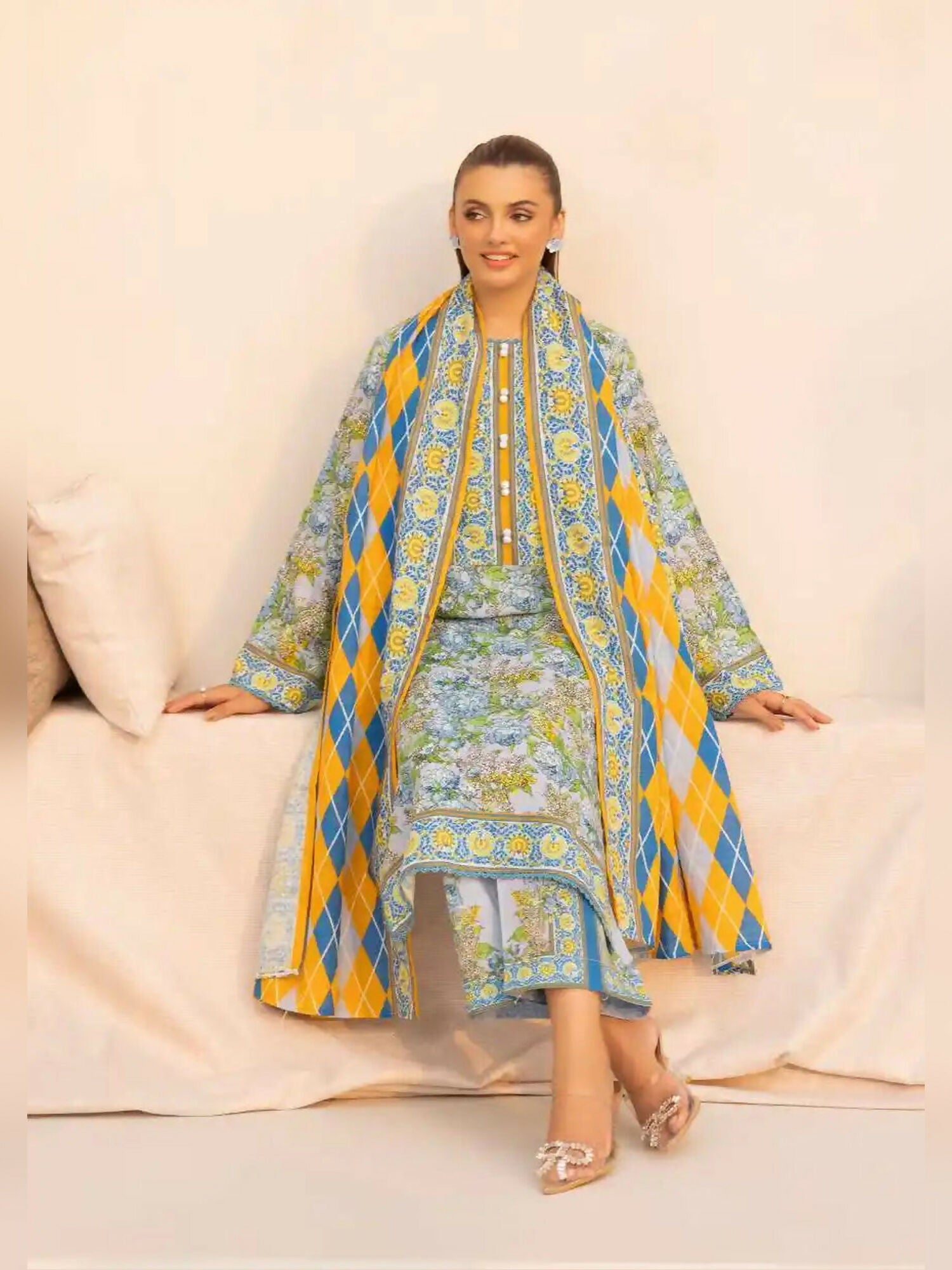 This beautifully designed 3-piece suit by Gul Ahmed is crafted from khaddar fabric, making it a perfect choice for the season. Featuring a printed khaddar shirt, matching printed trouser, and a coordinating printed dupatta, this ensemble blends traditional charm with modern appeal. Ideal for everyday wear and casual gatherings, it offers both comfort and style in one complete look.