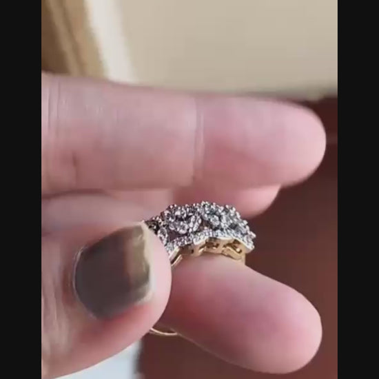 Grace your fingers with the 18K Gold Zircon Floral Cluster Band Ring from H&A Jeweller...
