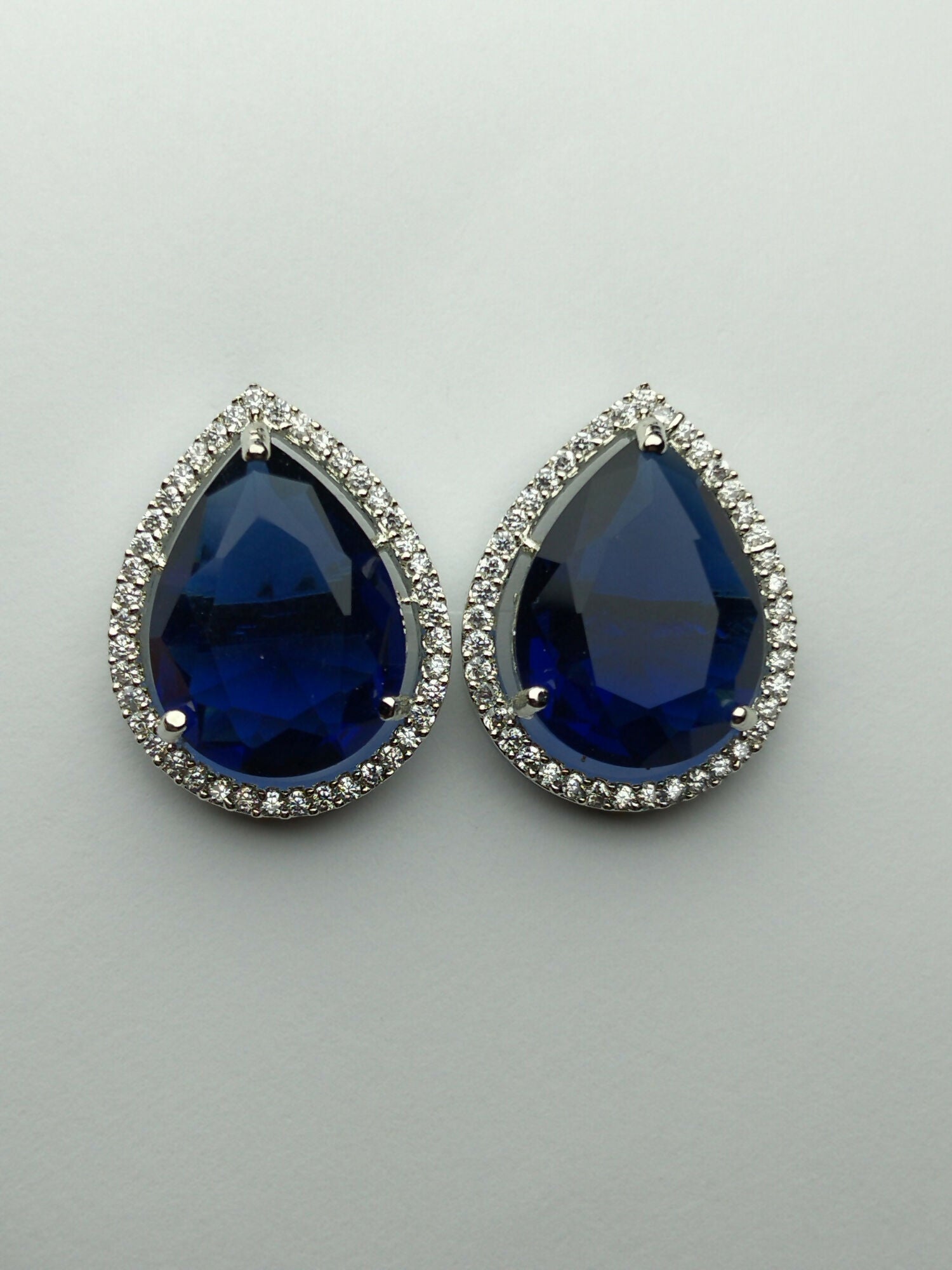 H&A Jewellery presents stunning stud earrings with one carat semi-precious stones American diamond. Featuring a cushion-cut emerald-green stone surrounded by a halo of clear crystals, best for traditional and casual wear.