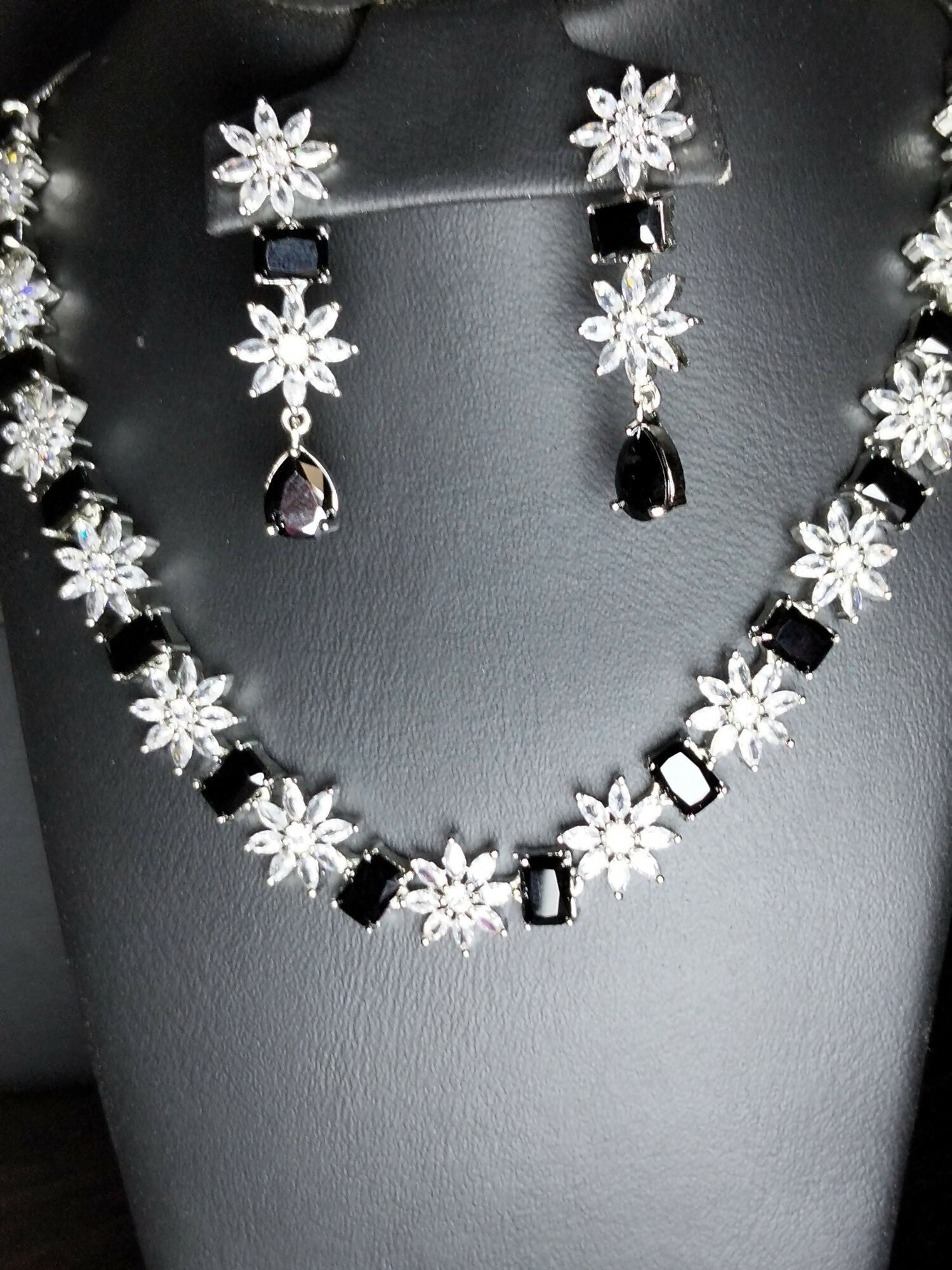 H&A Jewellery presents a silver-plated necklace and earring set with one carat semi-pr...