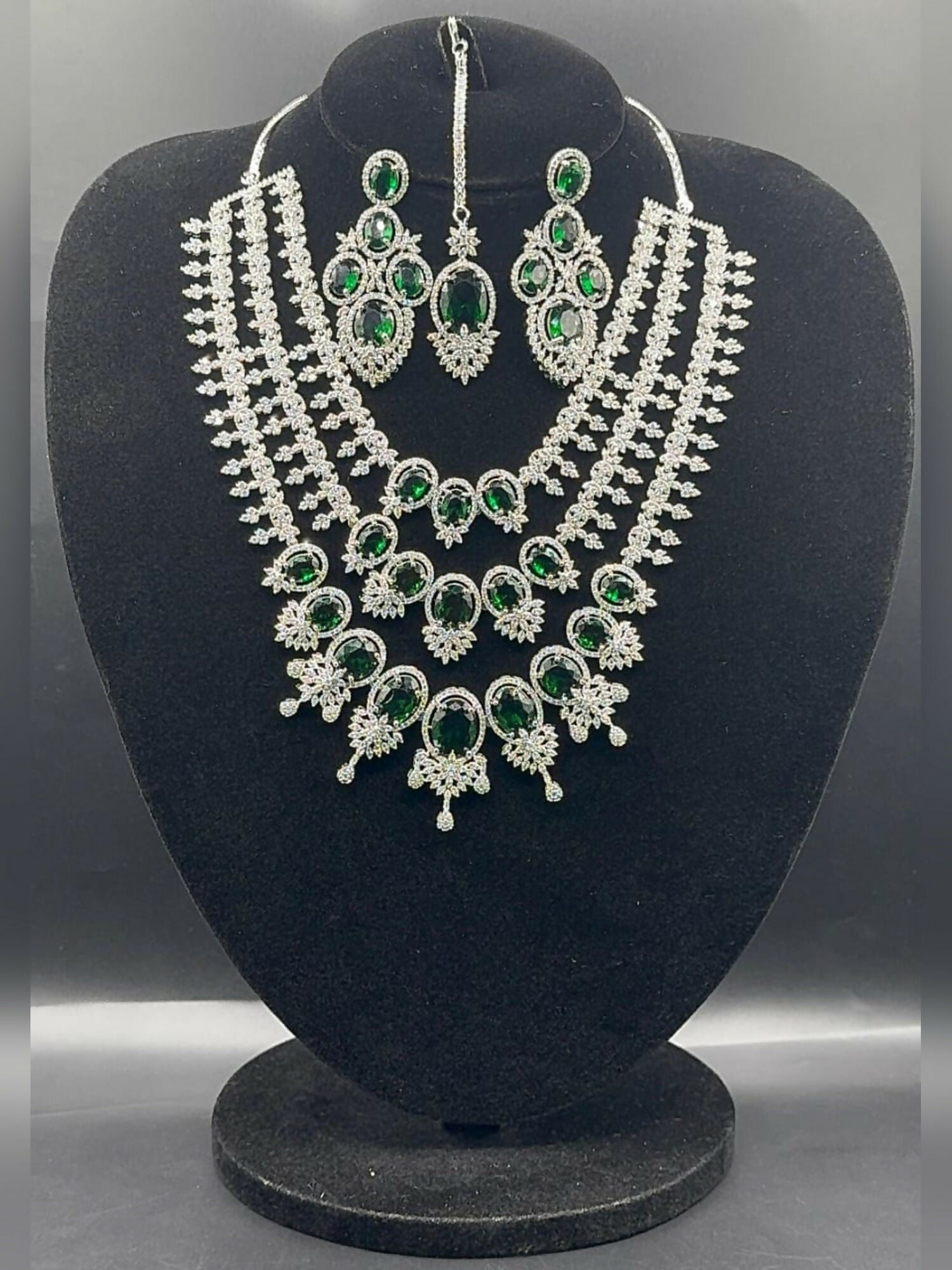 H&A Jewlery One Carat Silver Rhodium-Plated American Diamond Set, crafted with precisi...