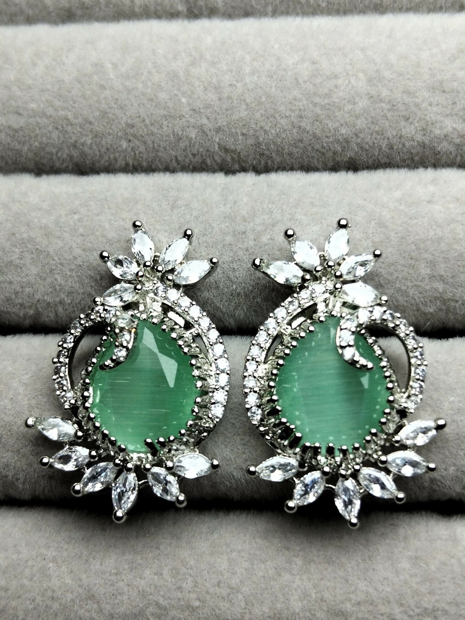 H&A Jewellery studs earrings in silver and green colour bring a soft feminine touch to...