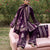 A long purple karandi shirt enriched with traditional embroidery and delicate tassels, fea...