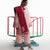 This elegant light pink ensemble celebrates tradition with multicolored embroidery adorning the shirt, bell sleeves, and culottes. The shirt is enhanced with delicate tassels at the neckline, while the embroidered sleeves create a soft, flowing silhouette. Wide-legged culottes mirror the same intricate patterns for a harmonious finish. A bold red embroidered lawn scarf with tassels adds a striking contrast, completing this graceful and refined look.
