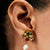 The Lotus Bloom Ear Studs capture the essence of refined elegance with their exquisite floral design. Inspired by the delicate beauty of the lotus, these studs are adorned with vibrant red, green, and white gemstones, possibly ruby, emerald, and uncut diamonds. Their timeless charm and graceful detailing make them a perfect choice for festive celebrations or to add a sophisticated touch to traditional attire.
