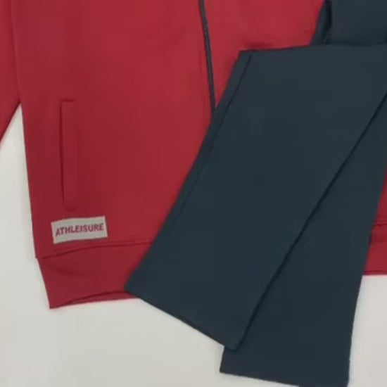 Funnel / standing collar Contrast color block panels on upper chest and arms Embroidery applique fashion logo on left chest Rib gripped Cuffs Rib gripped Bottom Trouser Two Side Pockets Draw Cord Adjustment Waist Belt Rib gripped Bottom.