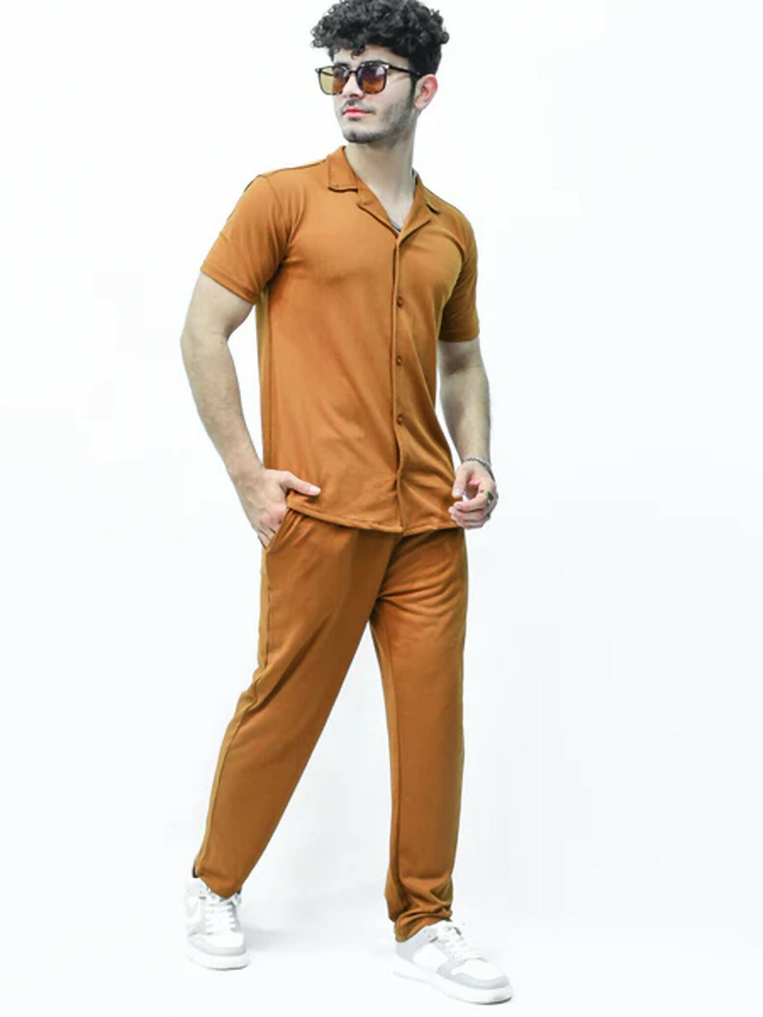 A sleek and modern coordinated outfit set crafted in smooth French pique knit (or “French” textured fabric), featuring a matching top and bottom in a clean, minimalist design. The set is designed for both comfort and style.