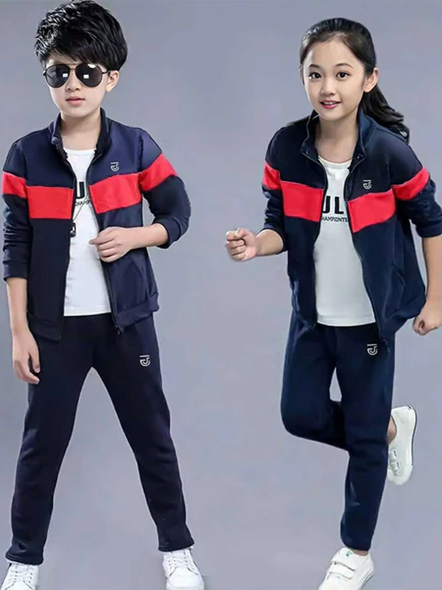 Jupiter Ultra Comfort Unisex Kids Track Pair is designed for active little ones, offering warmth, comfort, and style. Made from soft poly fleece fabric, it features a stylish standing collar jacket with color-block panels and matching trousers for a sporty look. Perfect for everyday wear, playtime, or outings during cooler weather. Suitable for boys and girls aged 2 to 14 years.