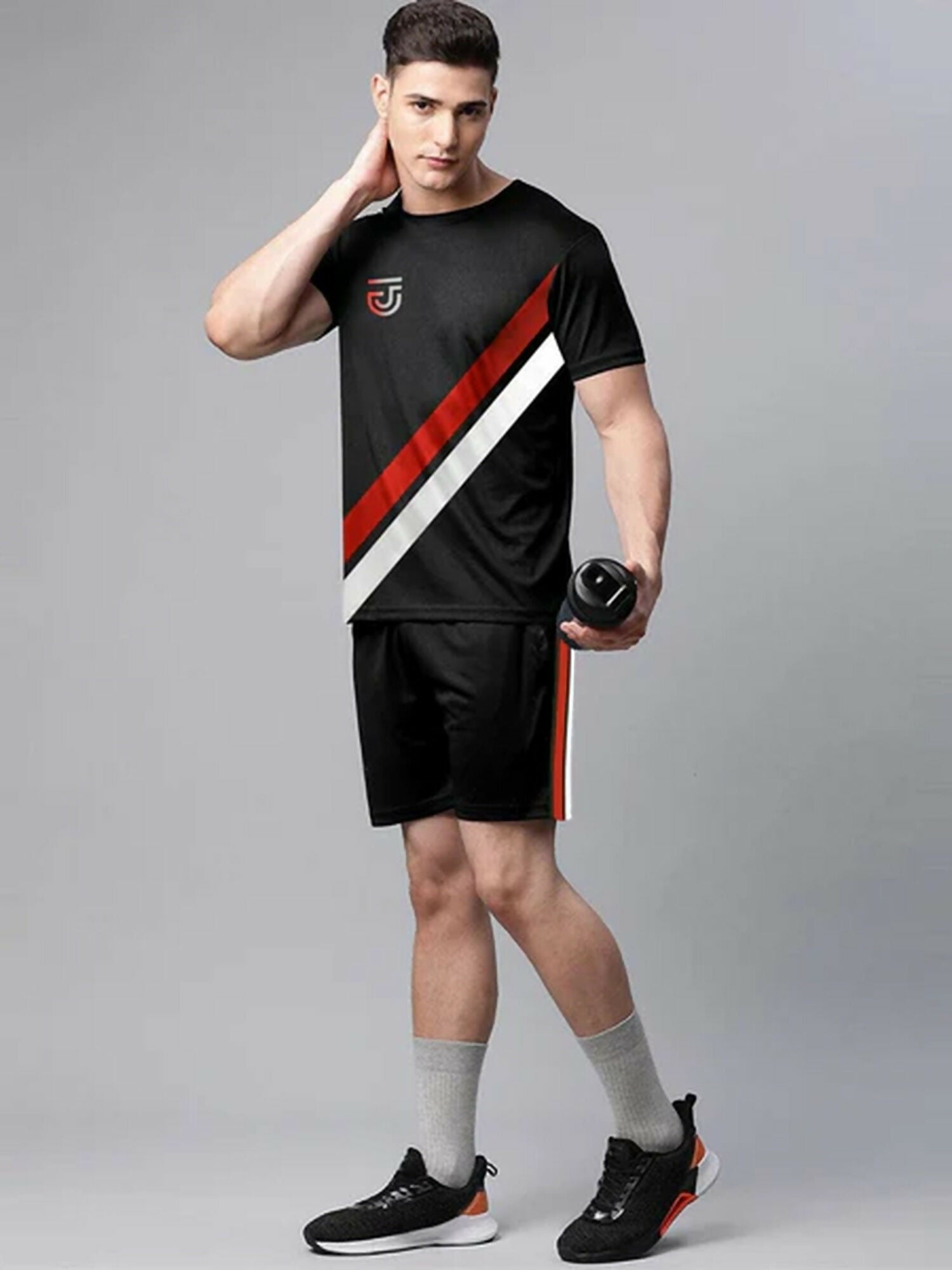 This flex twin set a pair of short sleeves round neck tee and a short which are suitable f...