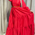 A vibrant scarlet red cotton maxi designed with elegance and comfort in mind. The tiered silhouette paired with a cinched waist creates a graceful flow, while delicate button detailing and full sleeves add a refined finish.