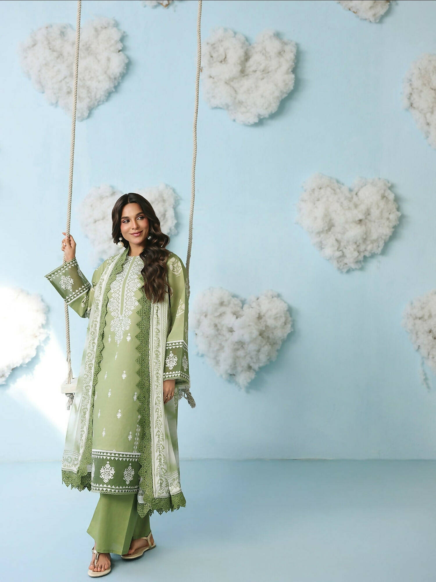 Experience a blend of artistic prints and delicate craftsmanship with this elegantly designed 3-piece ensemble. Featuring a premium embroidered printed lawn front and a versatile border for a customized finish, this set is paired with a flowing chiffon dupatta to create a look that is both breezy and undeniably sophisticated.
