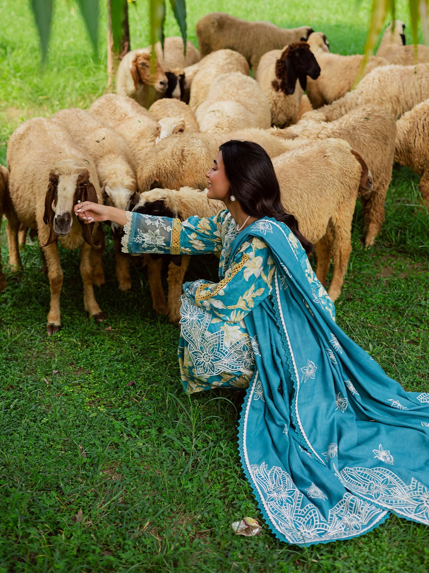 Winter charm meets refined craftsmanship in this elegant khaddar ensemble. The printed and embroidered khaddar shirt showcases exquisite detailing with an embroidered neckline, daman motifs, and borders that reflect timeless artistry. Paired with a luxurious embroidered wool shawl and a printed trouser, this outfit perfectly balances warmth, comfort, and sophistication for the winter season.