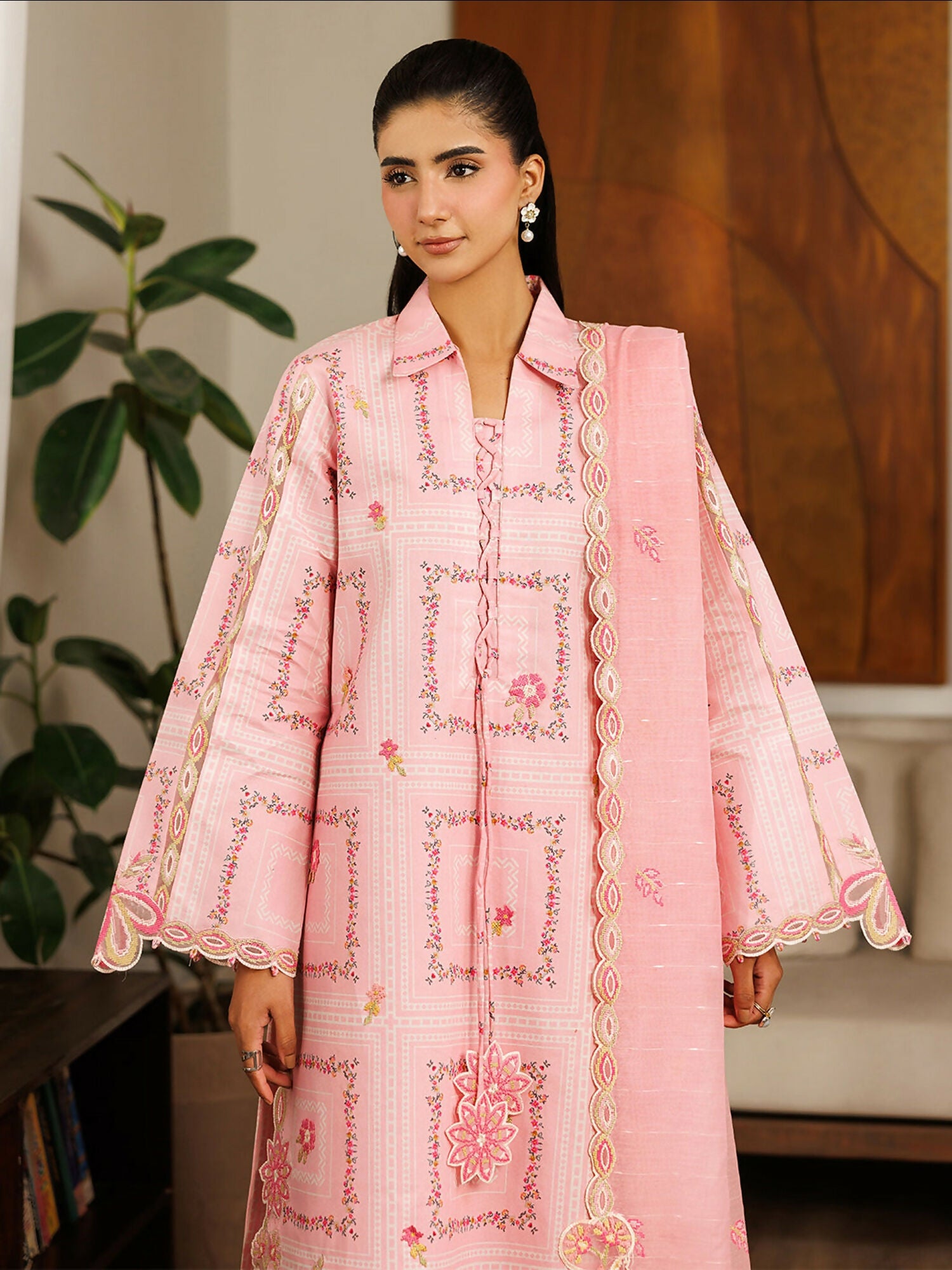 Step into graceful summer style with this elegant unstitched lawn suit, showcasing a refined blend of printed fabrics and intricate embroidery. Designed for effortless everyday elegance and semi-formal occasions, this ensemble delivers comfort with a polished, sophisticated finish.