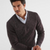 V neck knitted synthetic wool long sleeves sweaterProduct color may slightly vary due to p...
