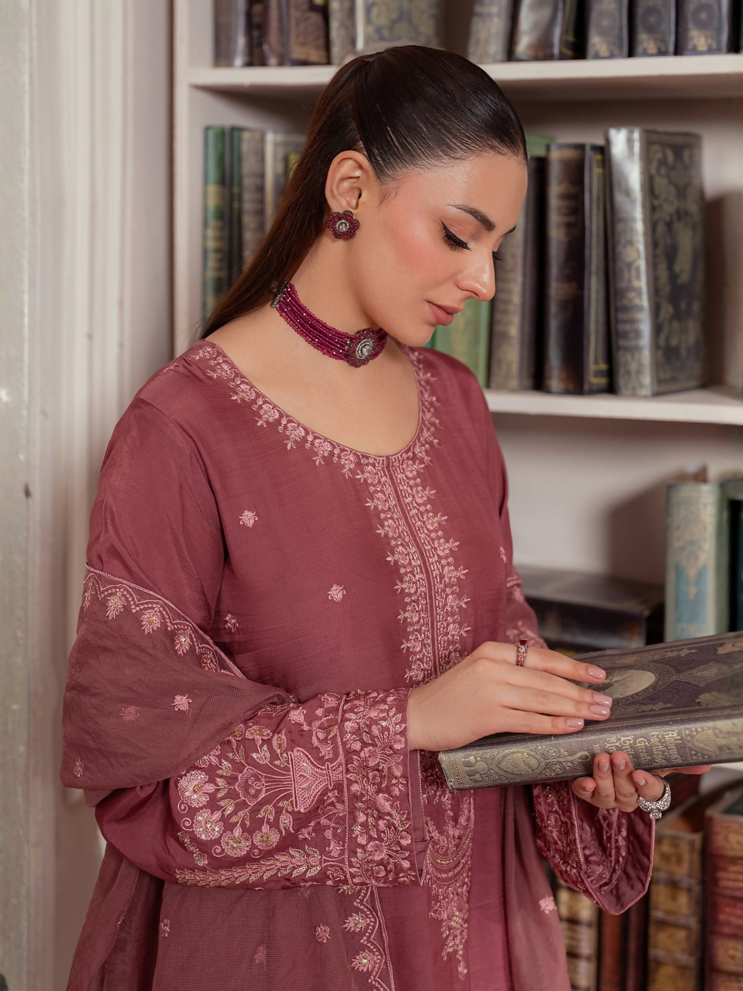 A beautifully crafted tea pink ensemble featuring delicate embroidery and soft viscose fabric, perfect for a refined and elegant look.