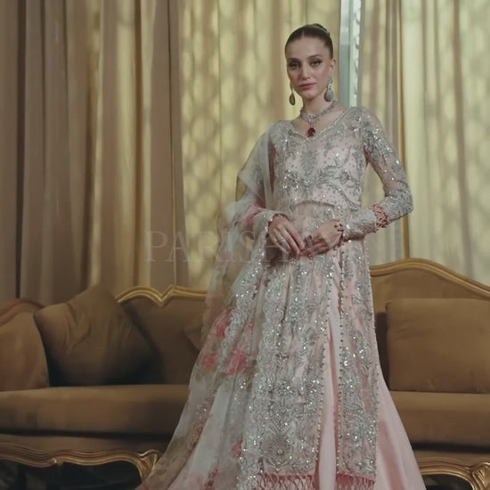 An elegant unstitched bridal outfit beautifully crafted with handwork embroidery and premi...