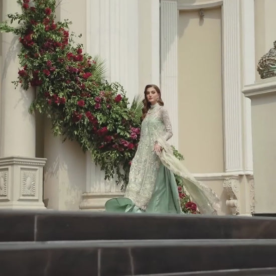 This exquisite unstitched bridal ensemble is crafted with intricate handwork embroidery an...
