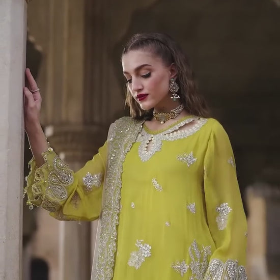Step into elegance with this 3-piece embroidered unstitched suit, designed with a perfect fusion of chiffon, polynet, and raw silk fabrics. The shirt is enriched with detailed embroidery on the front, neckline, and sleeves, paired with refined laces for a graceful finish. A delicate embroidered polynet dupatta adds charm, while the raw silk trouser completes the timelessly chic ensemble.