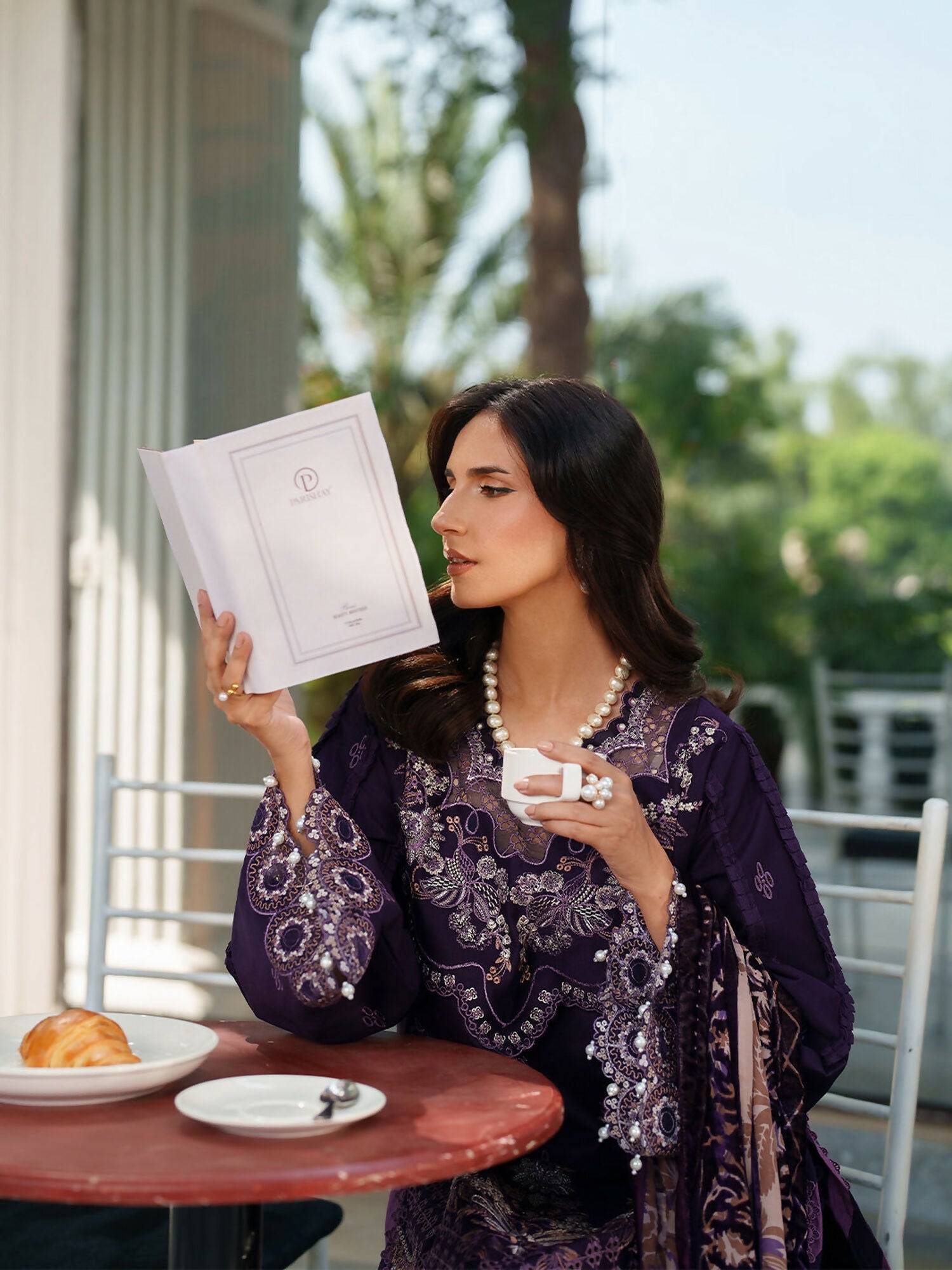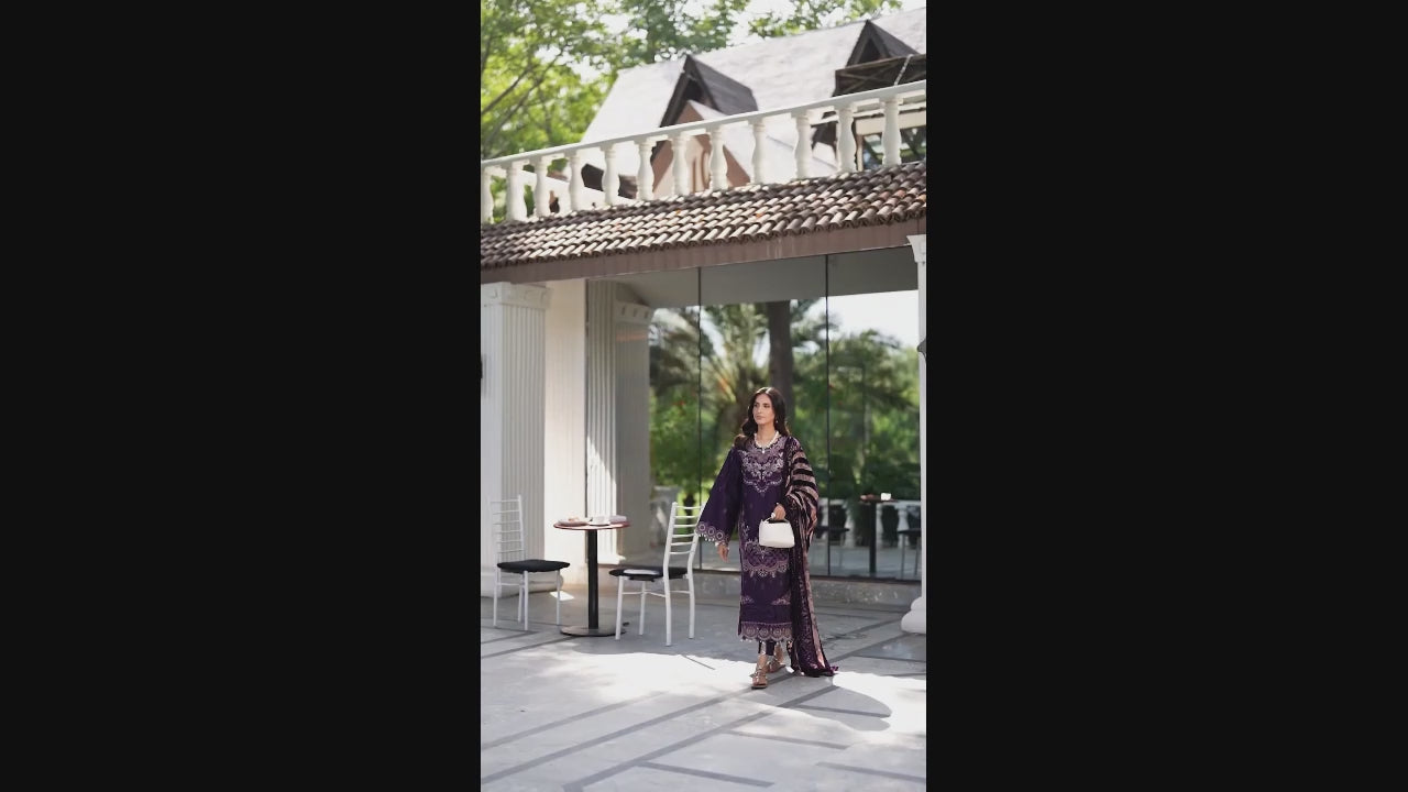 Embrace elegance with this unstitched 3-piece suit, featuring rich embroidered corduroy details paired with a luxurious palachi shawl and matching trouser perfect for timeless winter style.