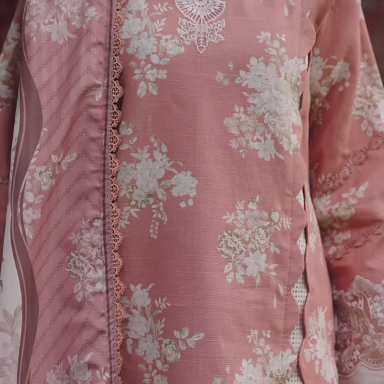 An elegant unstitched 3-piece suit from Parishay’s Rang-e-Sarma collection, crafted on warm khaddar for the season. The printed shirt is enriched with an embroidered neckline, daman, and sleeve borders, paired with a printed poly wool shawl and dyed khaddar trouser to complete the refined winter look.