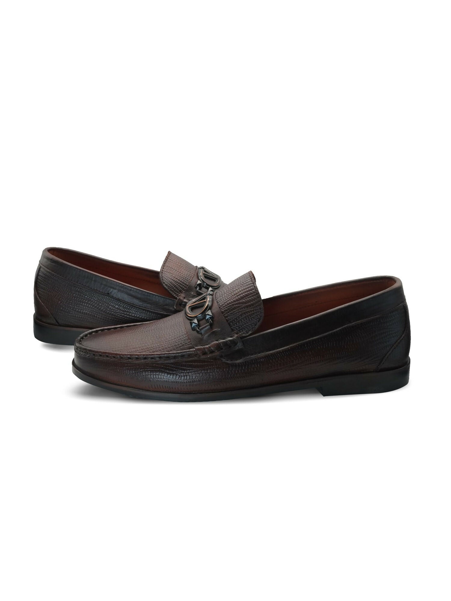 Crafted from premium brown textured leather, these casual loafers from Royale Leather feature a rich dual-tone finish and a sleek metal buckle accent. Set on a durable rubber sole, they offer both refined style and everyday comfort. The versatile Coffee shade and classic silhouette make them an ideal choice for smart-casual dressing.