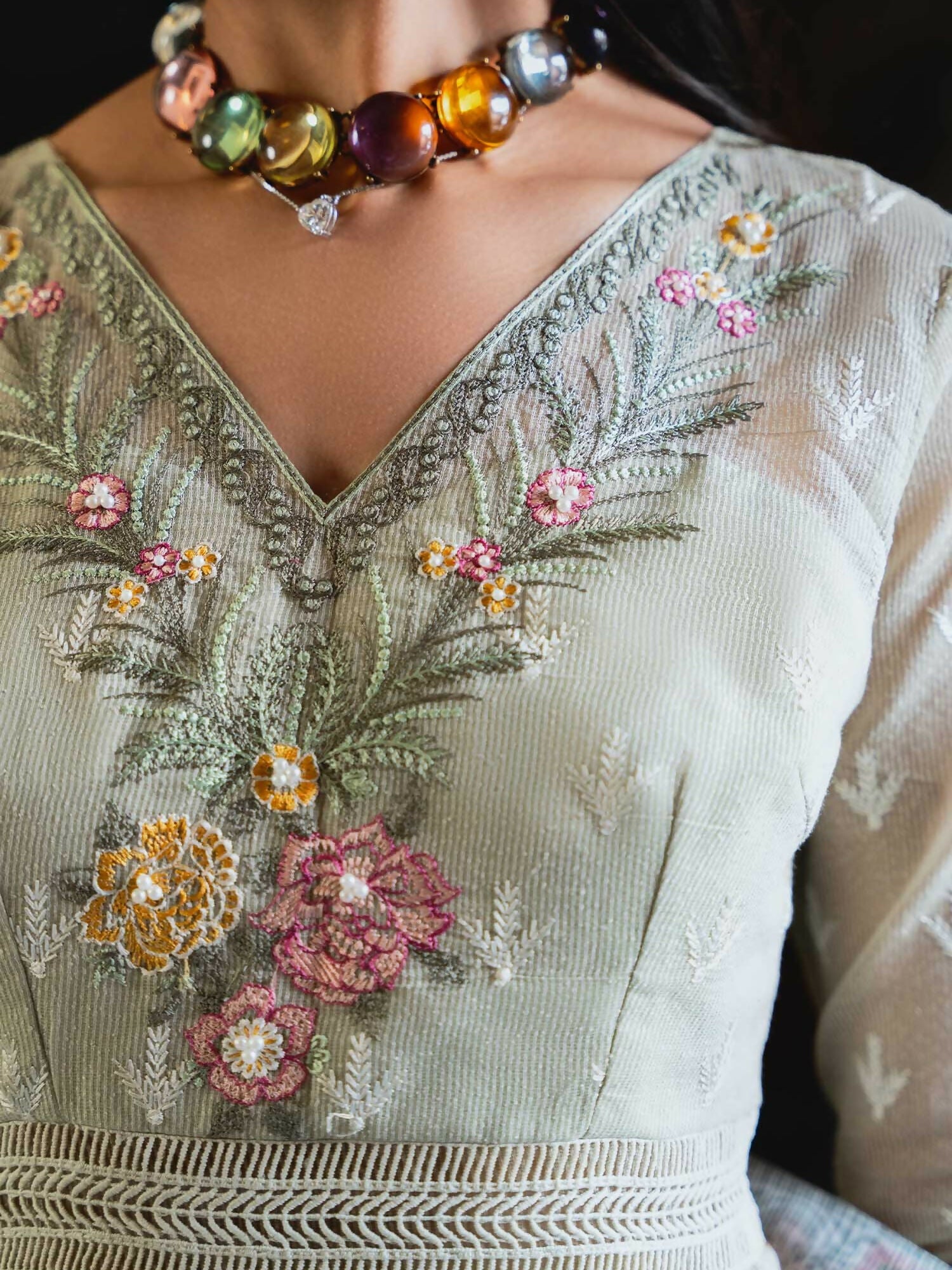 MIHA is a kalidar pishwas having side slits ,crafted with riched cotton net ,adorned with ...