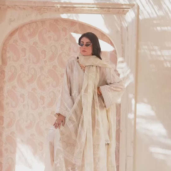 Shiza Hassan Chap Tilak Formals Pure Tusser Silk Embellished Stitched 3-Piece Suit-Carnation