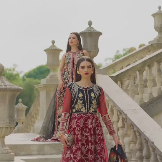 Experience the captivating charm of the outfit “Nyrah,” a stunning masterpiece that radiates sophistication in a mehroon hue crafted from luxurious organza fabric. This ensemble showcases detailed tilla thread embroidery along the pannels and border , complemented by embellishments, the masterpiece orchestrates a mesmerising symphony of opulence.velvet embroidered jacket is attached with this ensemble Complemented by an organza digital printed dupatta, resplendent with intricate embroidery and a striking border, “Nyrah” epitomizes grace and celebrates redefined beauty and craftsmanship. It stands as an ideal selection for those in pursuit of an extraordinary and unforgettable appearance.