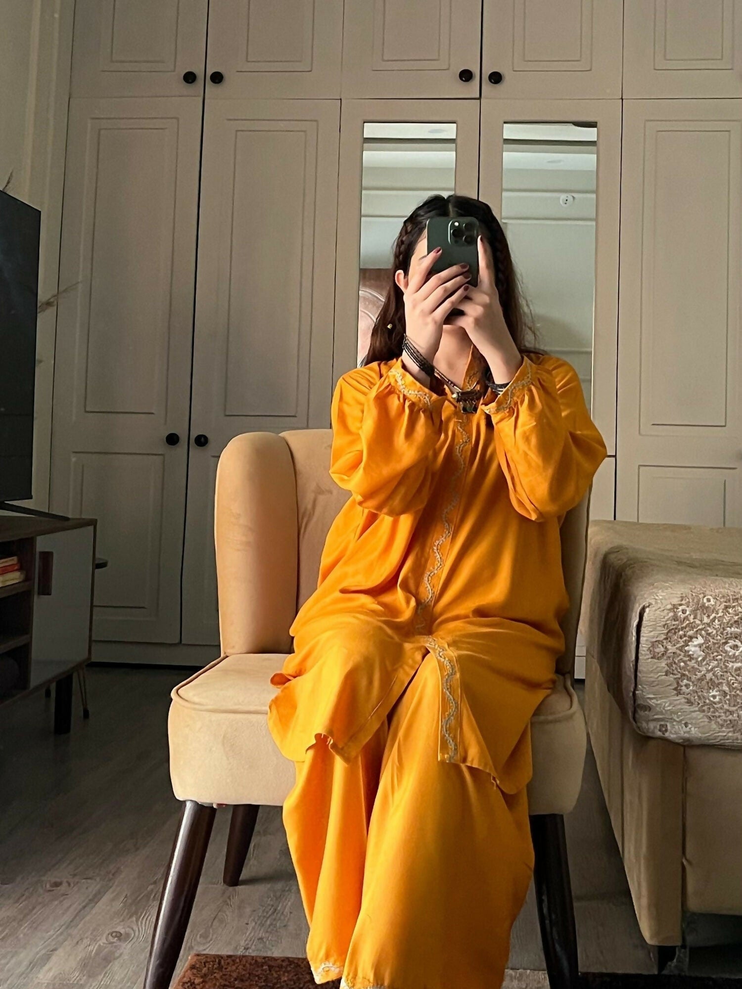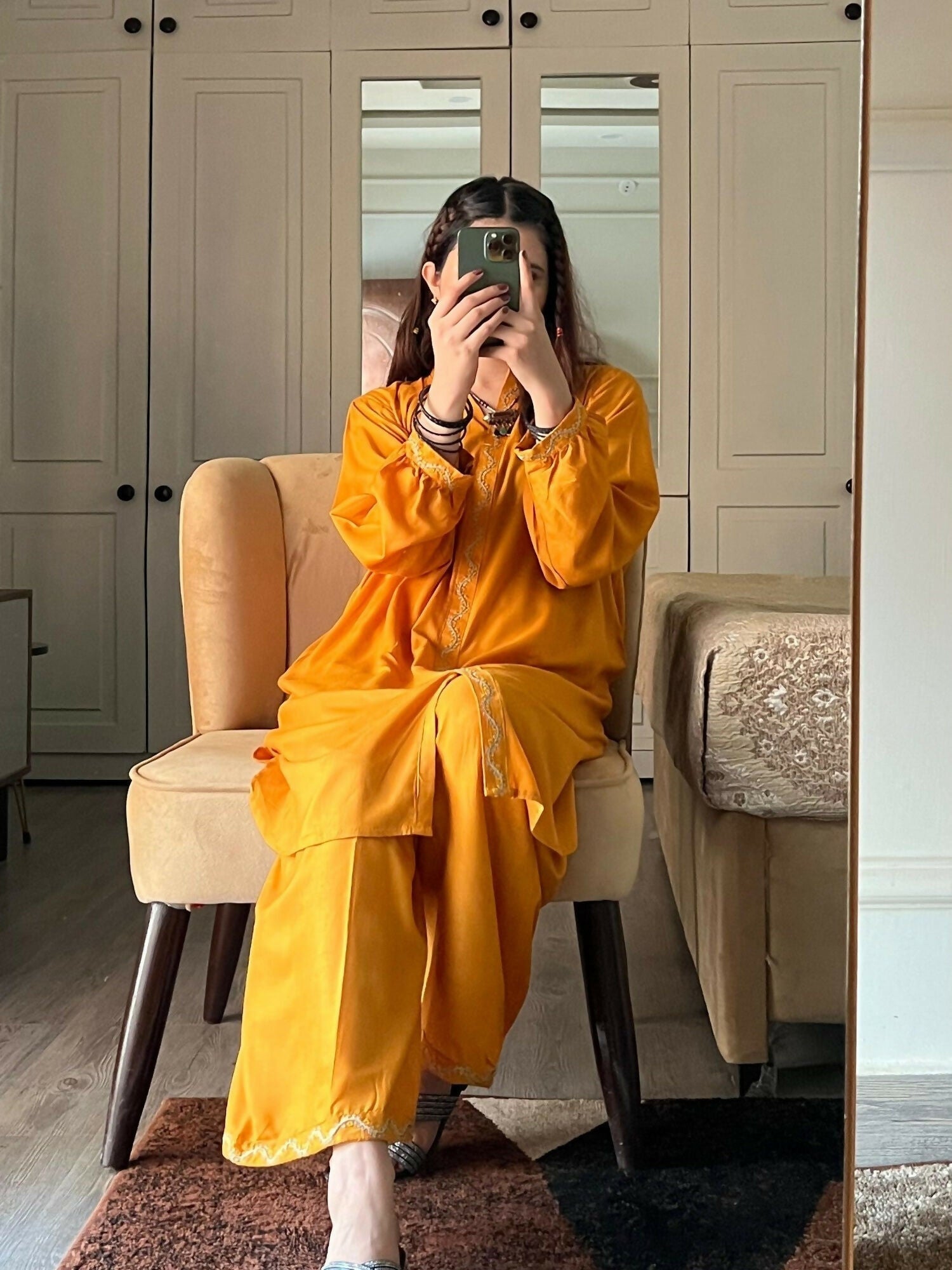 This 2-piece co-ord set from Stylish Collection Aaraish captures the essence of effortless summer style. Crafted from lightweight linen, the yellow embroidered straight-cut shirt offers a refreshing look in a comfortable regular fit. It is paired with matching bell-bottom linen trousers, adding a trendy yet relaxed touch to your everyday wardrobe. Perfect for daily wear and casual outings, this breathable linen ensemble keeps you cool and stylish throughout the season.