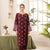 Elevate your summer style with this burgundy linen embroidered 2-piece kurta set. Crafted ...