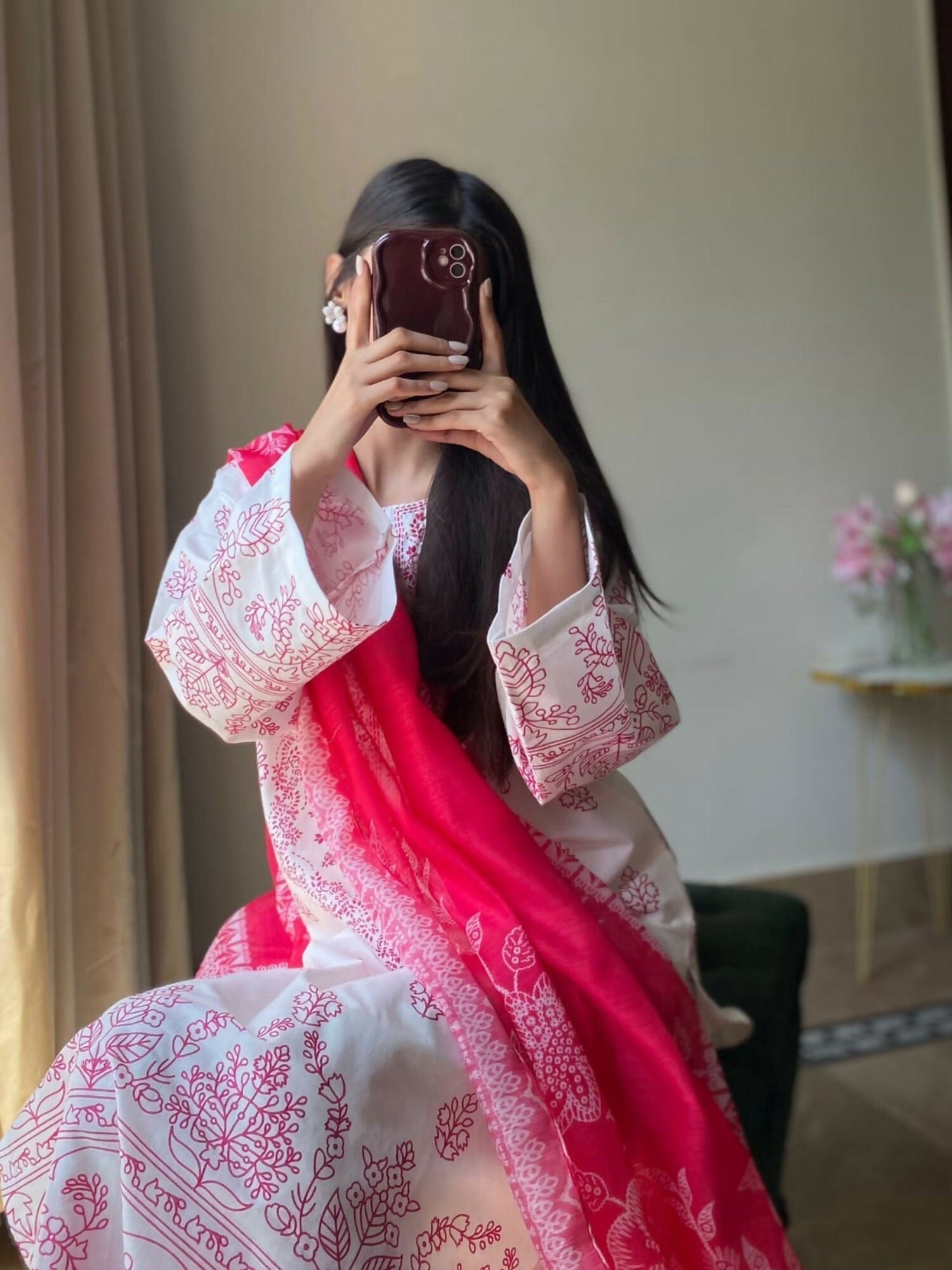 This 3-piece kurta set from Stylish Collection blends comfort and style, making it an ideal choice for summer daily wear. Crafted from lightweight lawn cotton, the screen-printed long kurta pairs beautifully with matching straight trousers and a soft Manaar dupatta. The elegant white tone adds freshness and simplicity, while the regular fit ensures comfort and ease throughout the day.