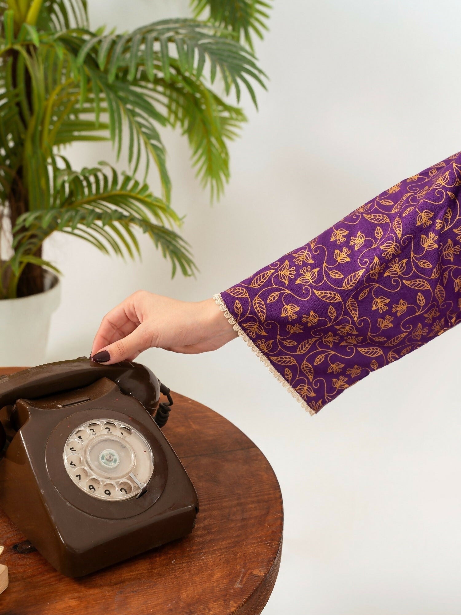 Stylish Collection Enchant Pret Linen Printed Co-Ord Set-Leaf Purple