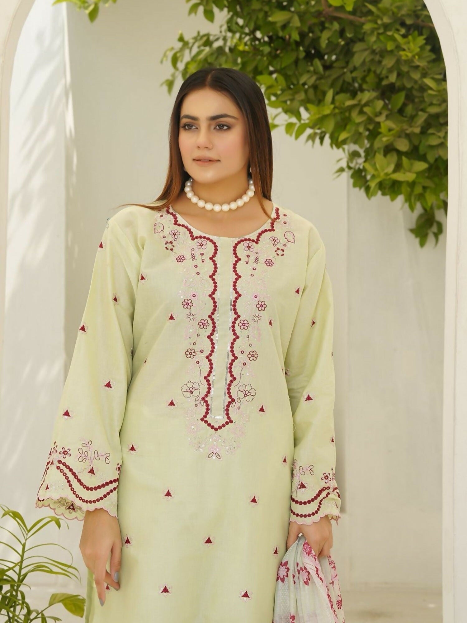 This 3-piece kurta set from Stylish Collection Serene Summer reflects timeless charm and comfort, ideal for warm-weather wear. Crafted from premium lawn cotton, the embroidered long kurta provides a refined and breezy look in a regular fit. It is beautifully paired with matching straight trousers and a lightweight lawn dupatta, offering effortless elegance for everyday use or casual gatherings. The breathable lawn fabric ensures cool comfort and a fresh feel throughout the day.