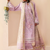 An elegant mauve purple outfit by Sana Yasir, featuring intricately embroidered front panels, organza borders, and a printed silk dupatta with embroidered details. Perfectly paired with a plain cambric trouser for a graceful look.