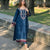 Shirt: Blue cotton long kurta with white and maroon floral embroidery, and bordered sleeves