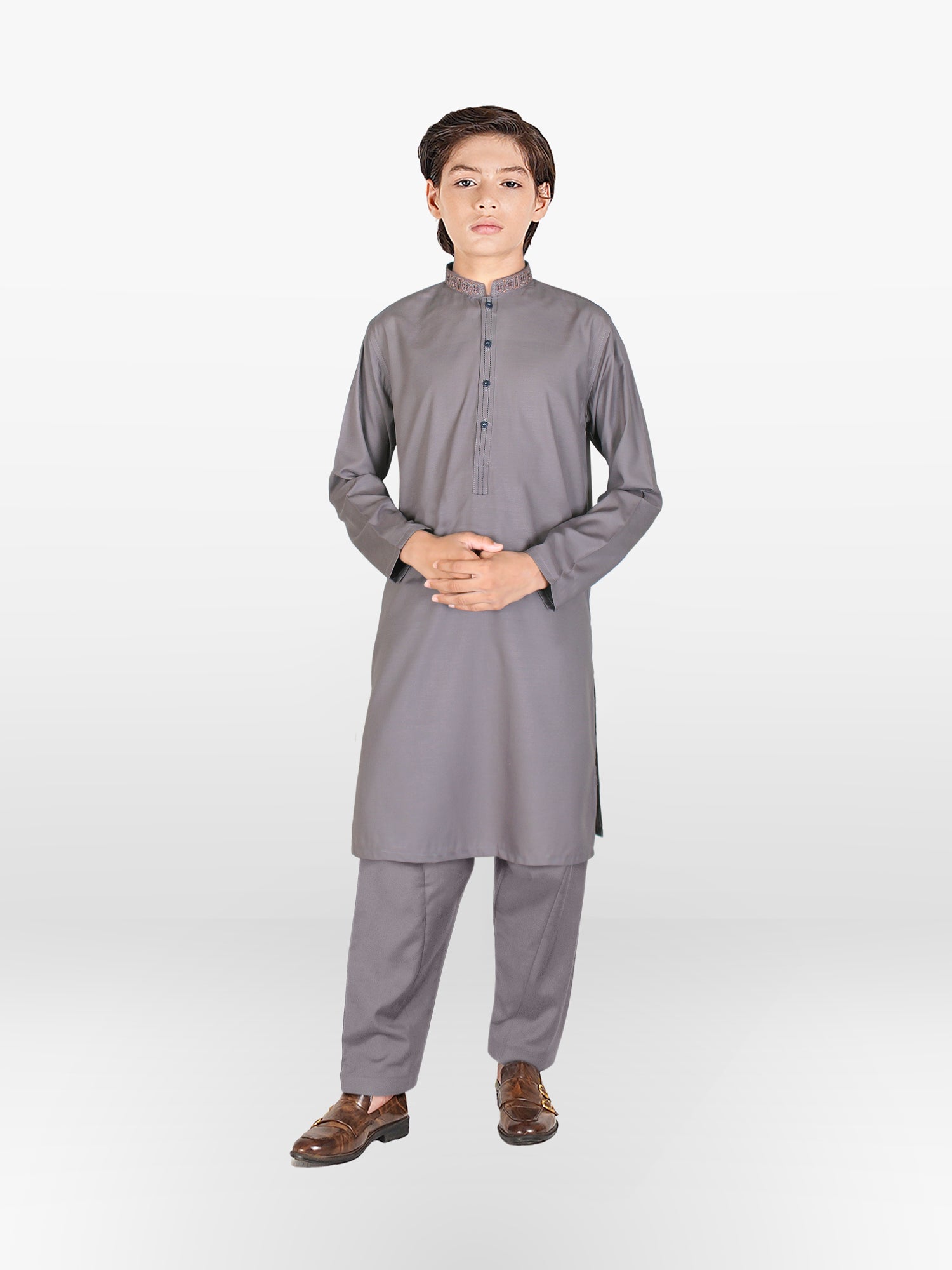 Velvour Boys Cotton Embroidered Stitched Kurta Shalwar Suit-VB201-D