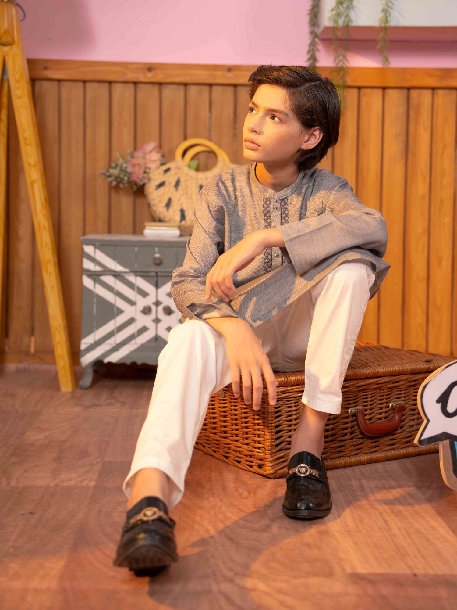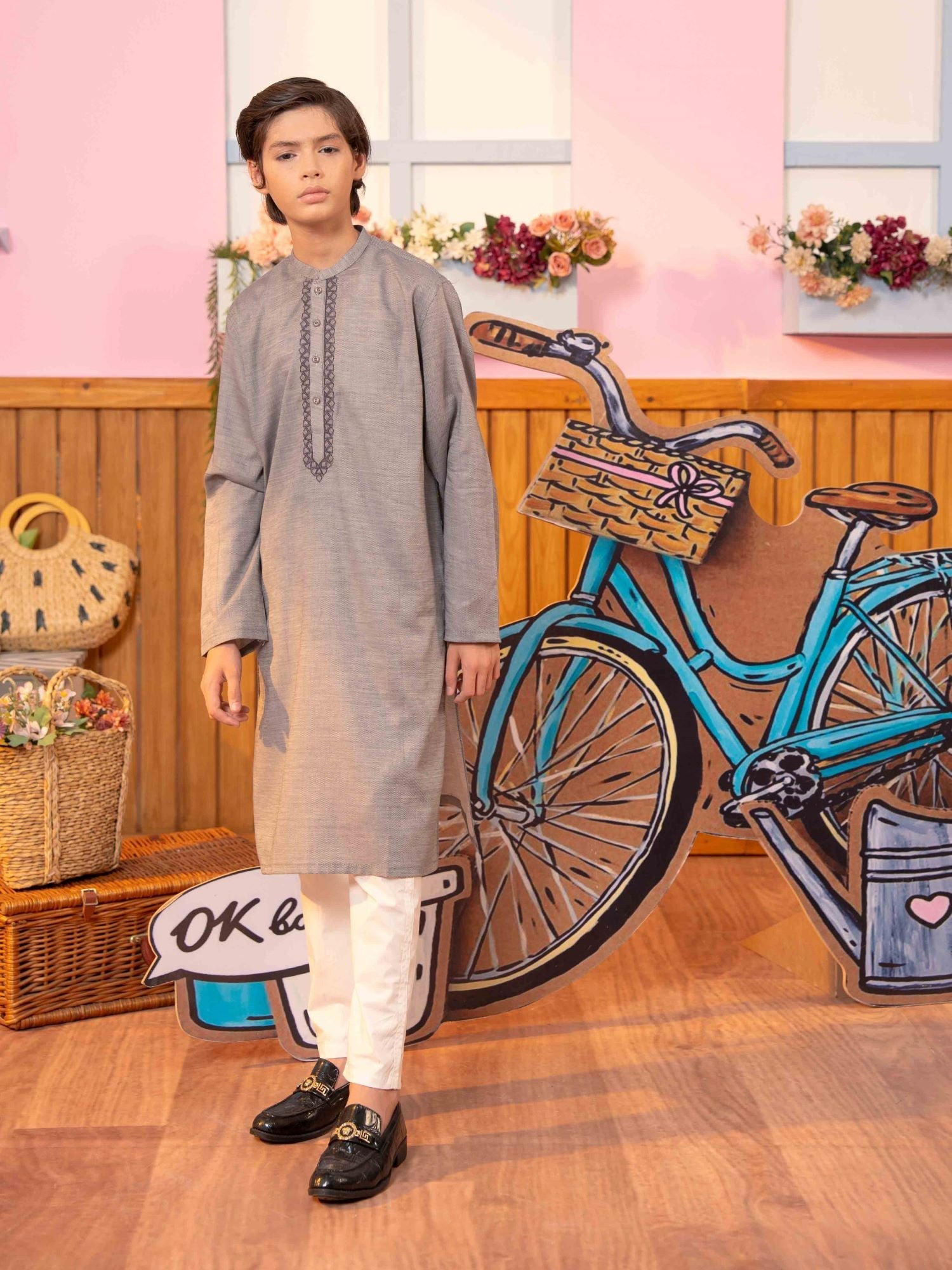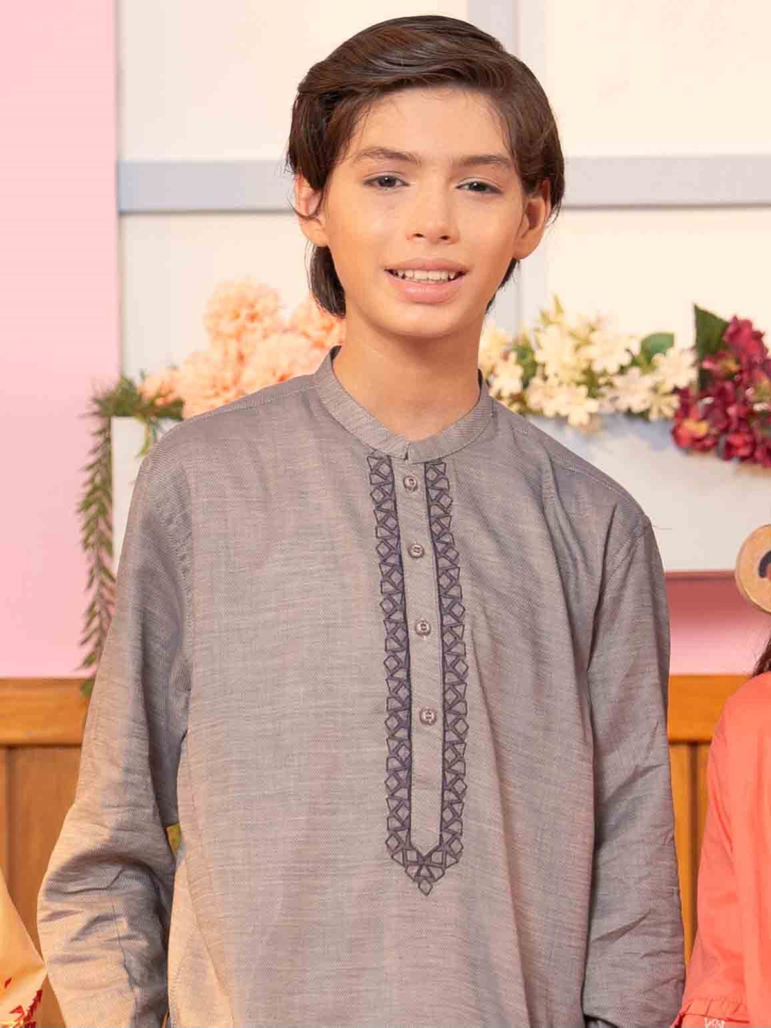 Velvour Boys Cotton Embroidered Stitched Kurta-VB195-A
