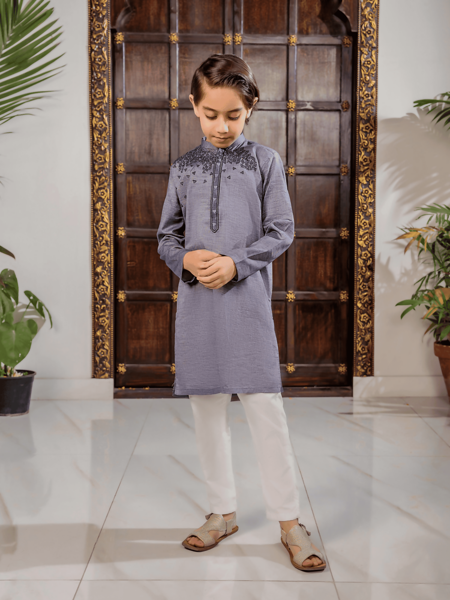 Velvour Boys Cotton Embroidered Stitched Kurta-VB199-A