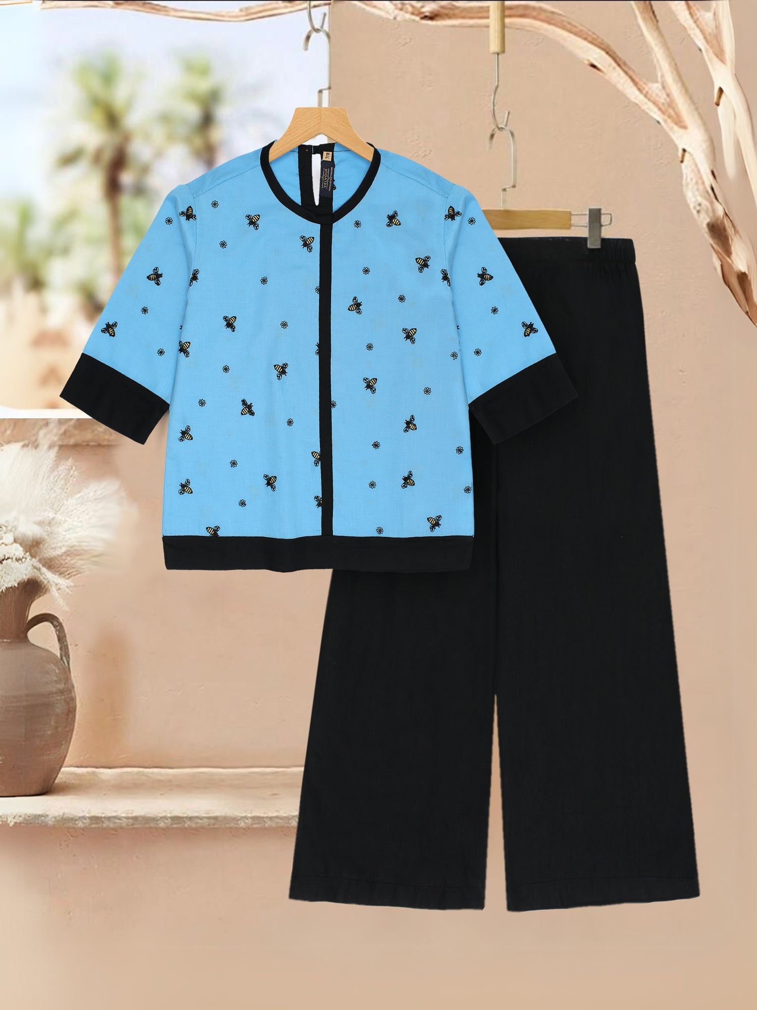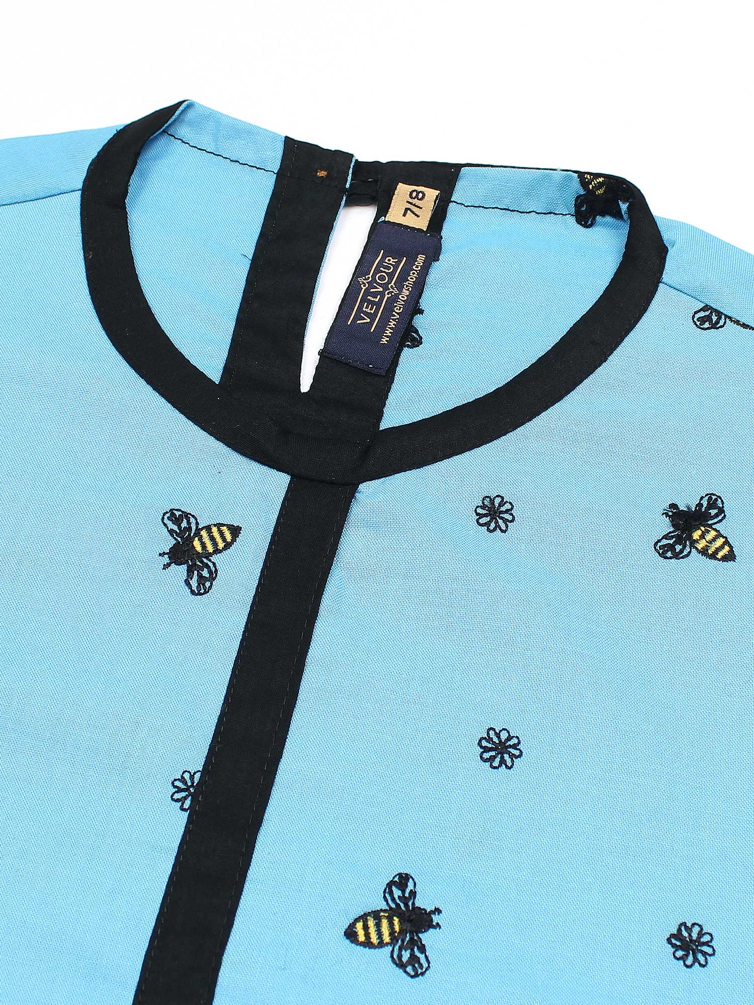 Velvour Girls Cotton Embroidered Co-Ord Set-VG168-A